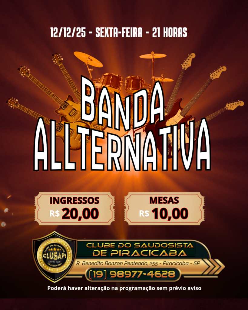 12/12/2025 – Sexta-Feira – das 21:00h à 01:00h