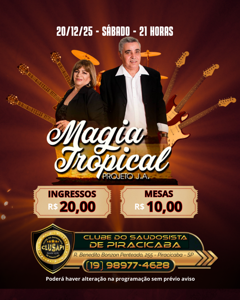 20/12/2025 – Sábado – das 21:00h à 01:00h