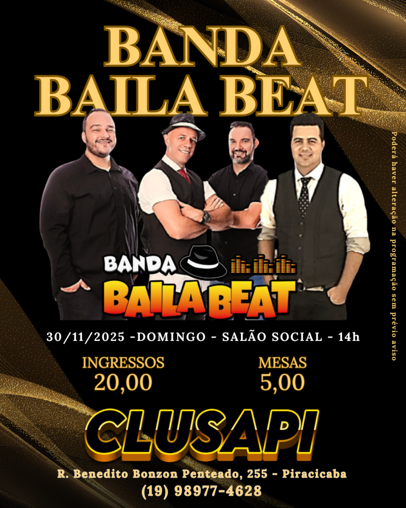 30/11/2025 – Domingo – Matinê – das 14:00h às 18:00h