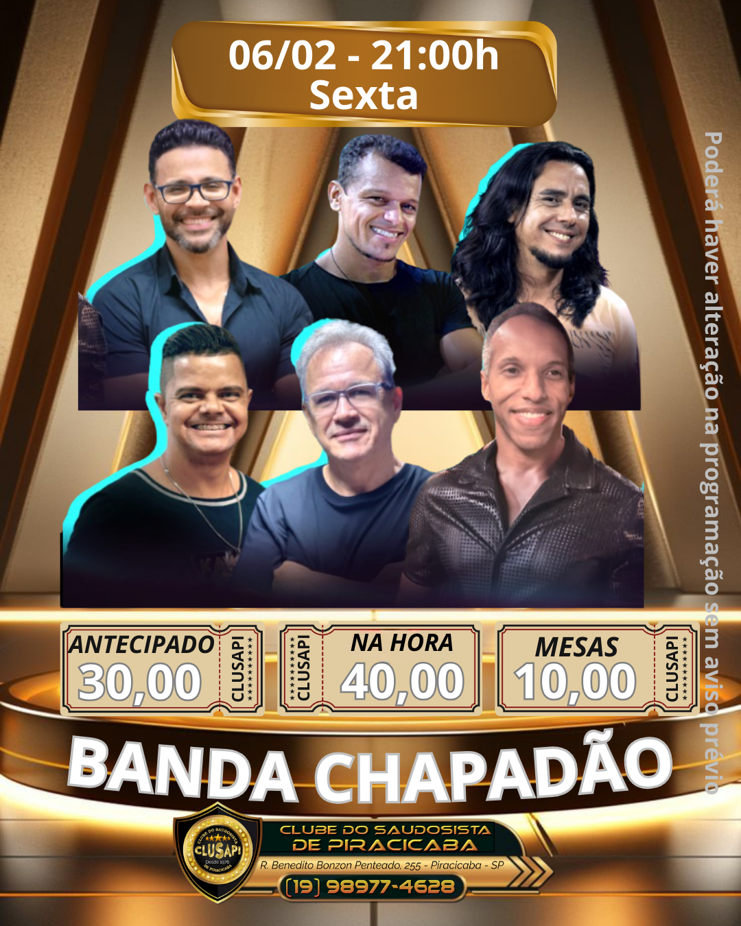 Ingressos Antecipados: R$ 30,00