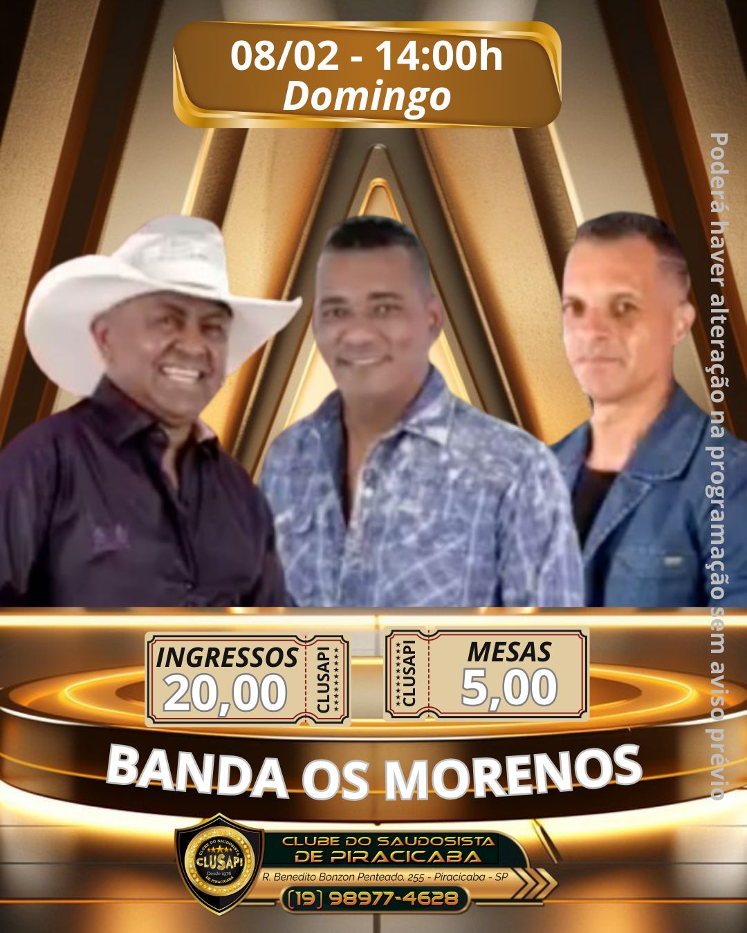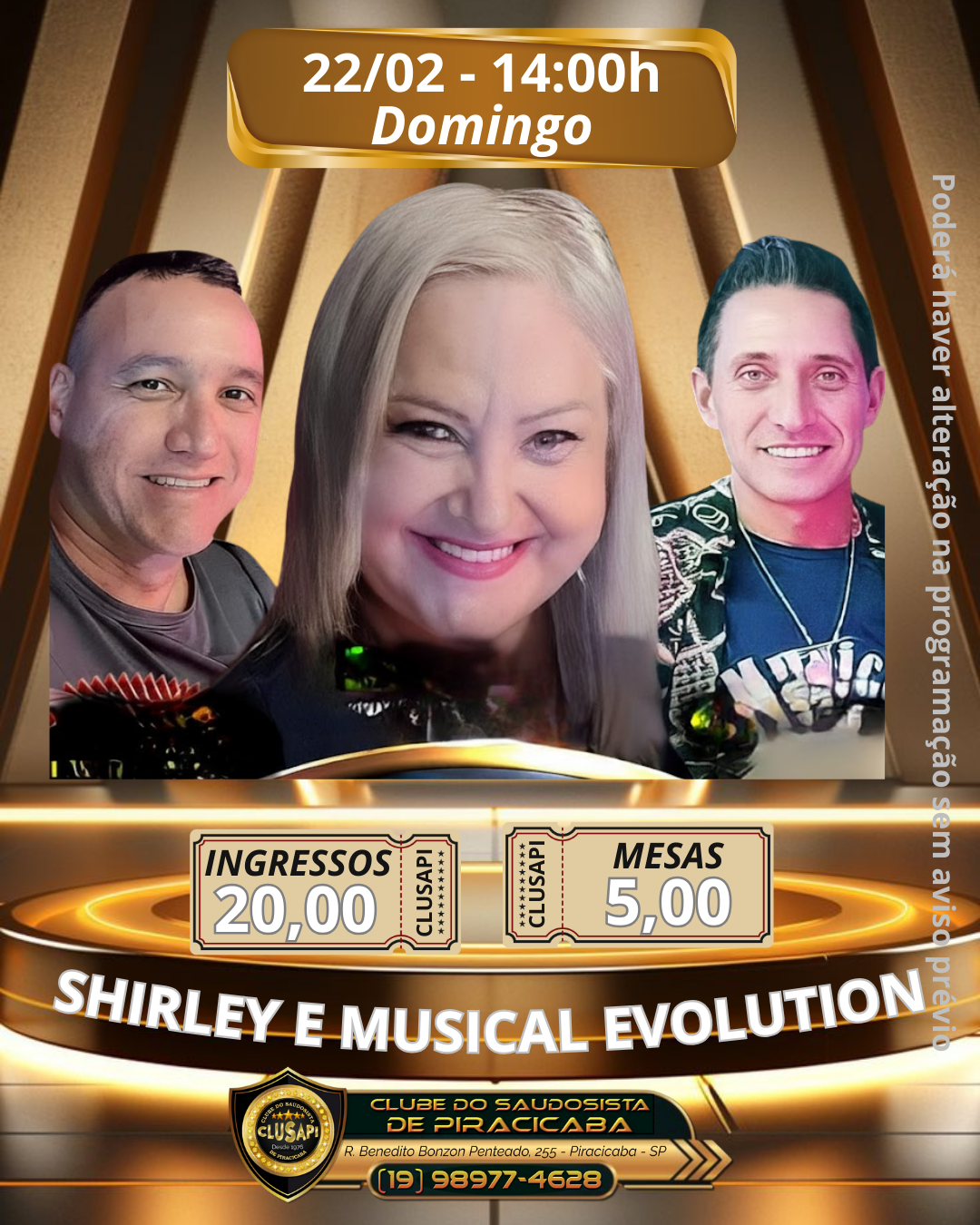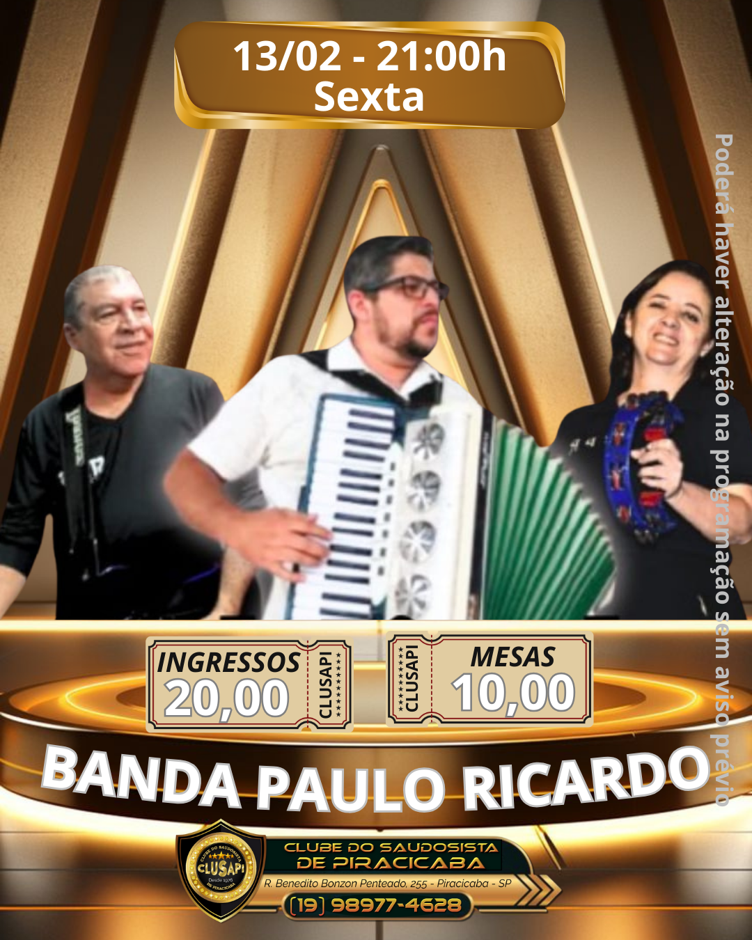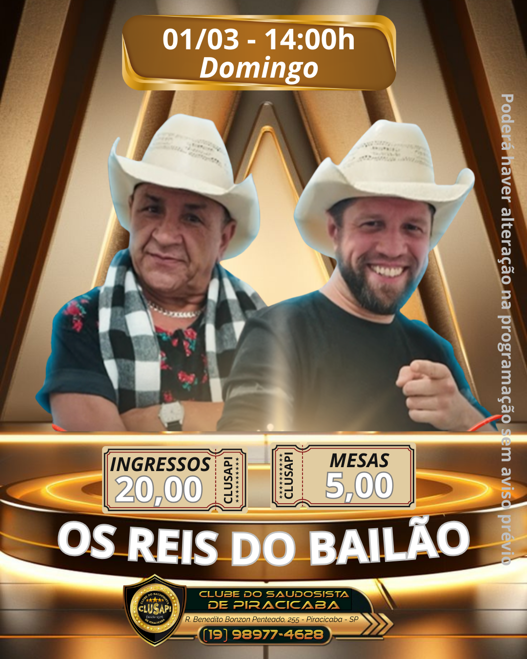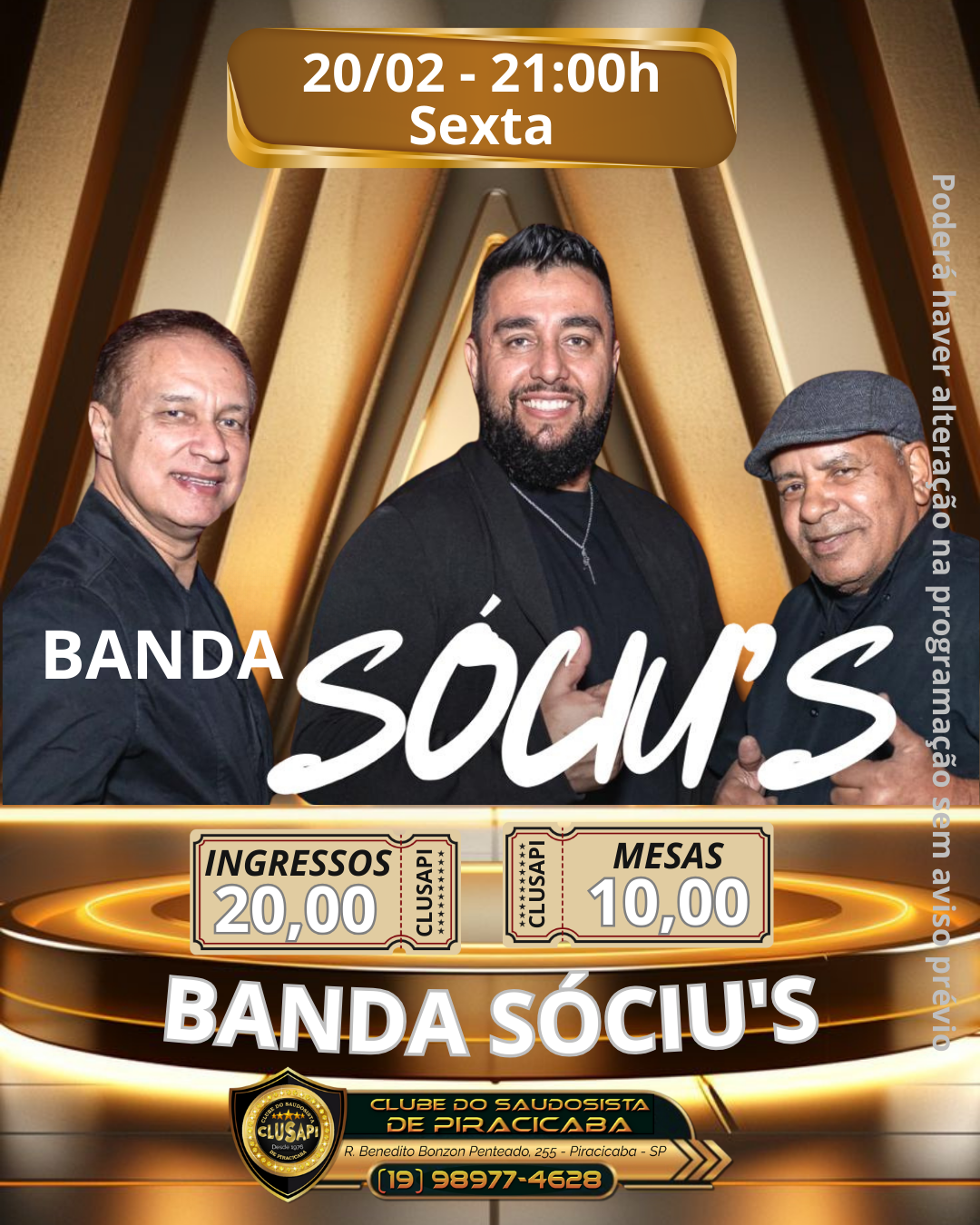 Ingressos: R$ 20,00